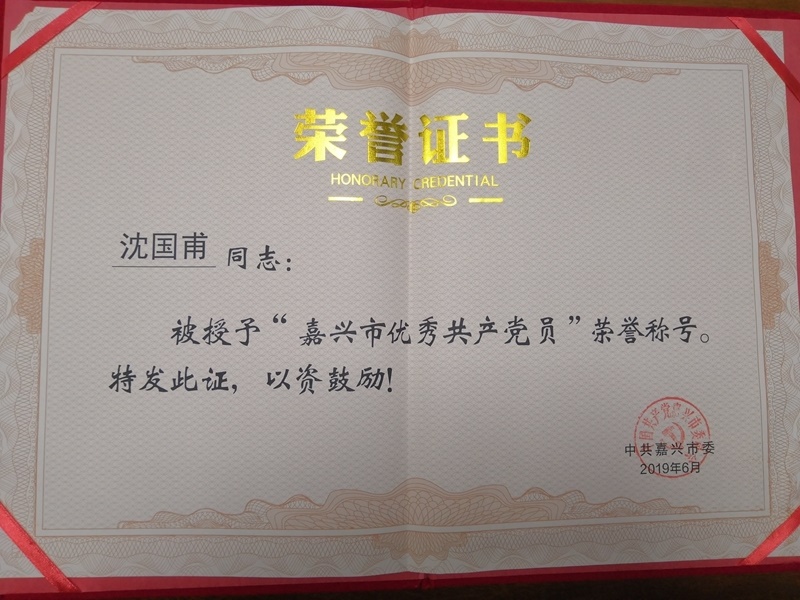 2019年6月28日下午,“不忘初心、爭先創優、追夢奔跑”嘉興市慶祝中國共產黨成立98周年表彰大會在嘉興大劇院隆重舉行。市委書記張兵講話,市委副書記、市長毛宏芳主持,市領導劉冬生、高玲慧、孫賢龍等出席。會上,表彰了全市優秀共產黨員。宏達控股集團黨委書記、董事長沈國甫榮獲“嘉興市優秀共產黨員”。